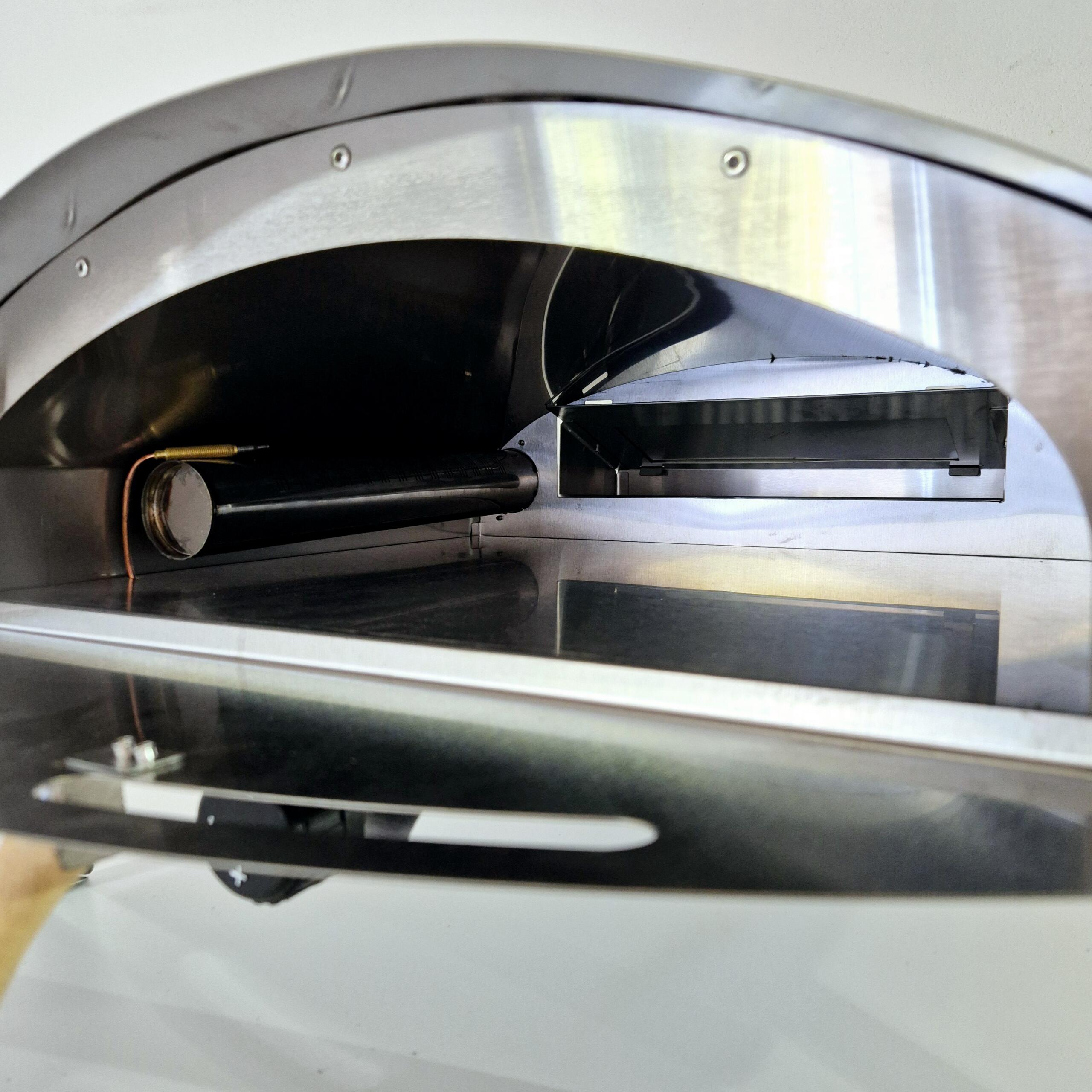Alcanza más de 450°C, permitiendo reproducir la cocción rápida y uniforme de la auténtica pizza napolitana.