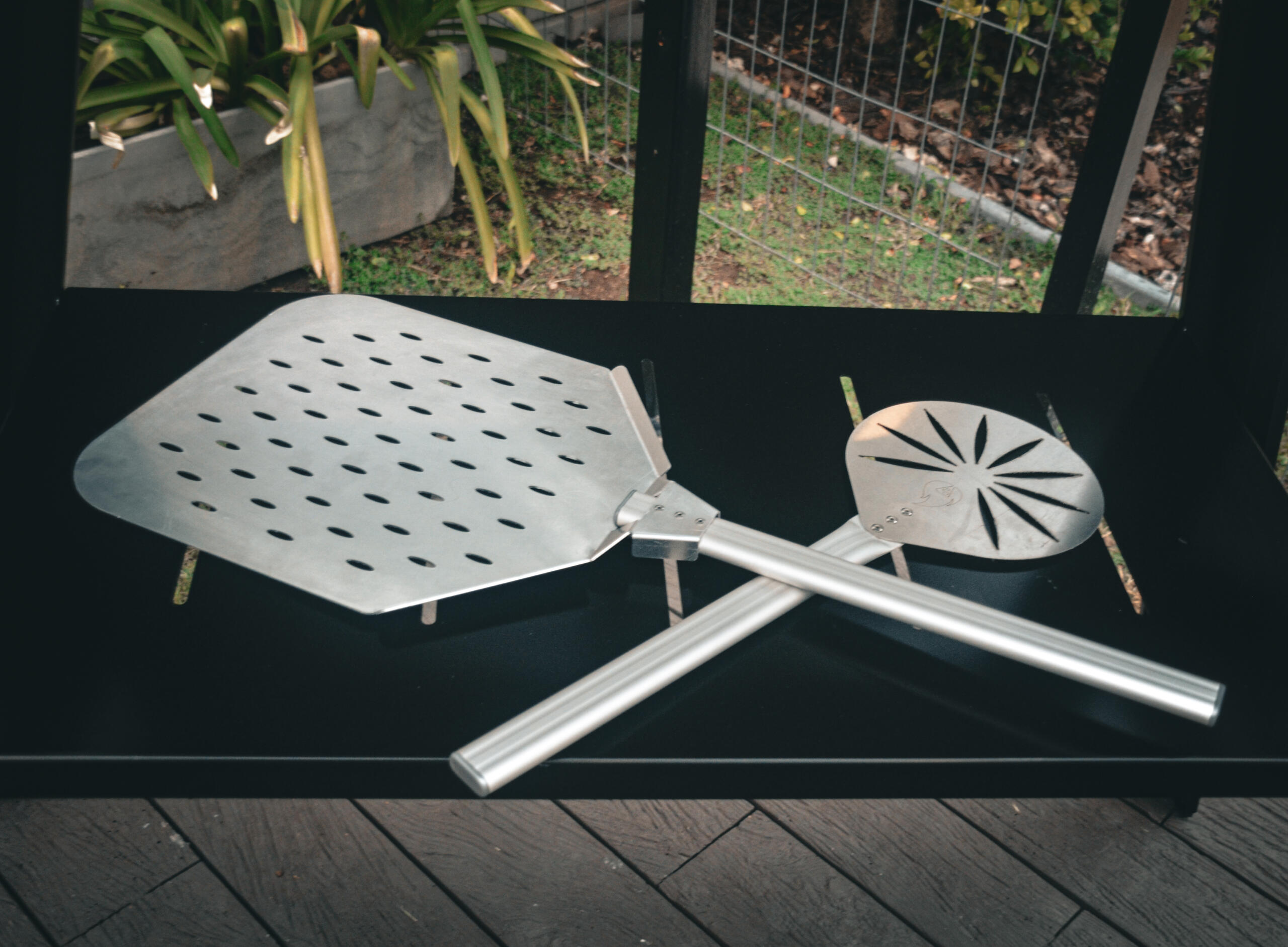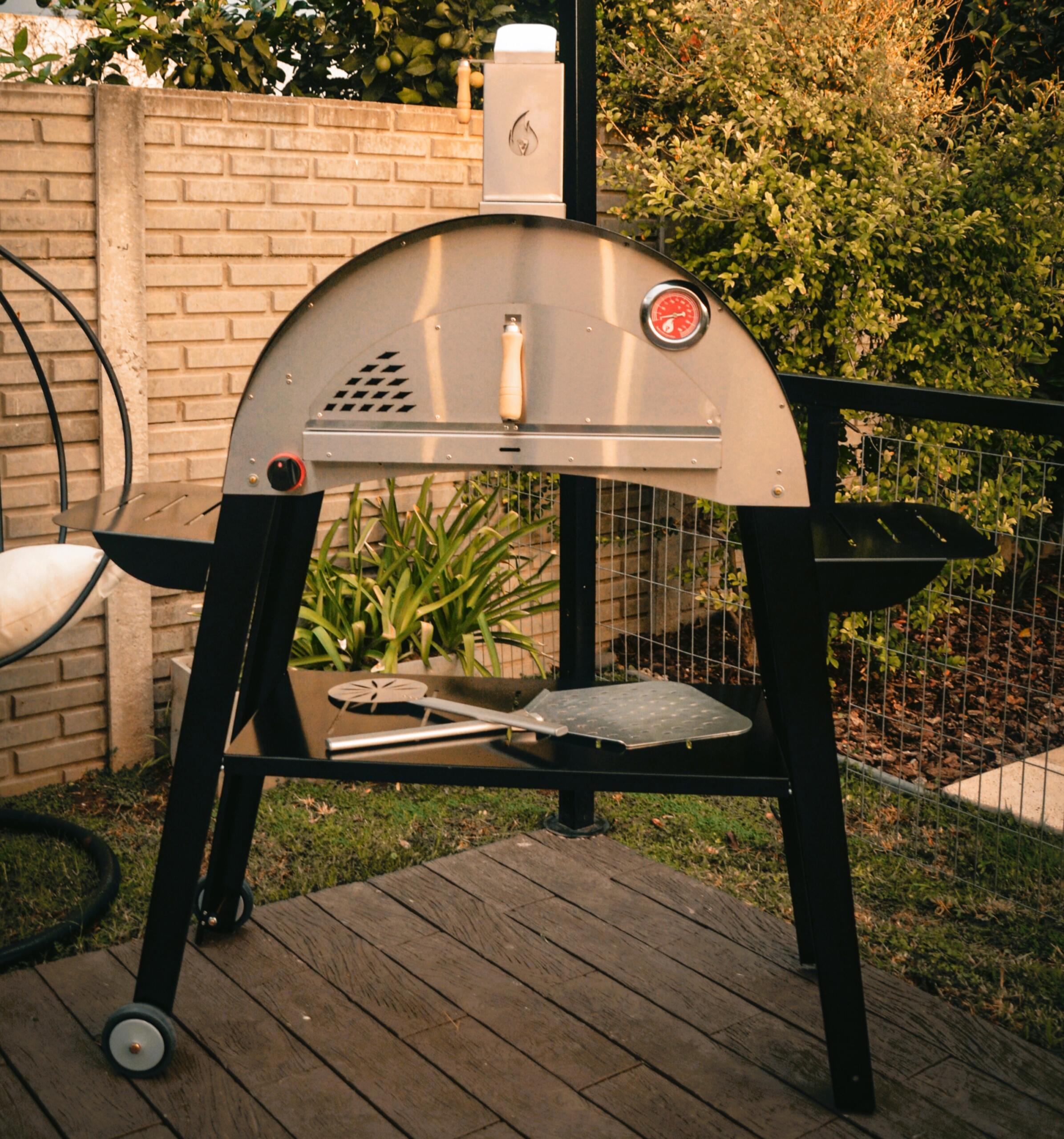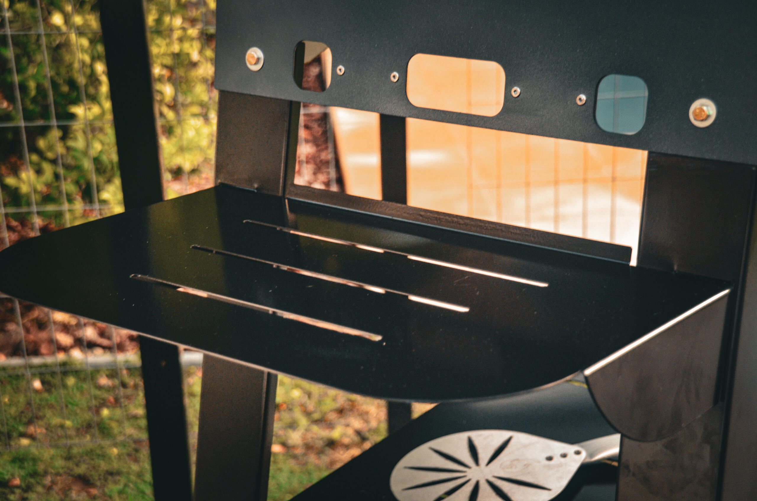 Diseñado a medida para soportar con total seguridad al Doppio, este kit transforma el horno en una unidad móvil, práctica y funcional. Su estructura robusta incluye un estante inferior ideal para la garrafa, utensilios o accesorios, y dos amplias tablas laterales que aportan superficie adicional para preparación y maniobras durante la cocción.